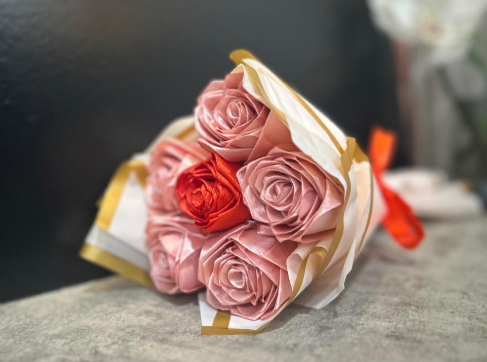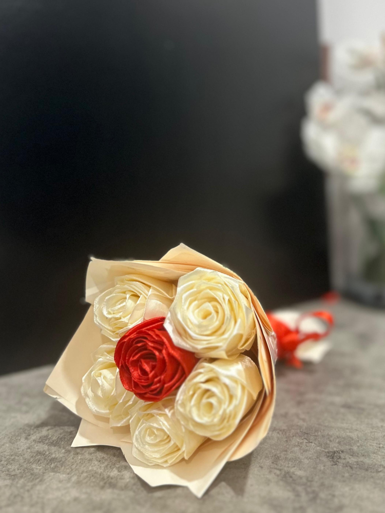 تسوقي الآن باقة ورد ساتان دائم حجم صغير من متجر mawahebart واستمتعي بجمال يدوم